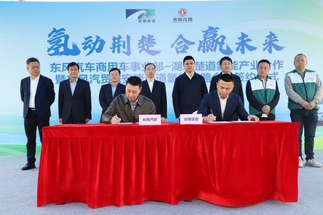 3月30日,“氢动荆楚 合赢未来”东风汽贸-安捷楚道氢能战略合作签约仪式在武汉举行。东风汽车旗下公司东风汽车贸易有限公司与湖北安捷楚道供应链有限公司正式签署氢能重卡推广应用合作协议,双方将携手省内多家龙头企业,推动1500台东风氢能重卡的批量采购与落地应用。
